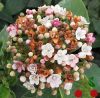 -KWIATY: Pąki są intensywnie różowe, a po rozkwitnięciu ukazują śnieżnobiałe, pachnące gwiazdki zebrane w wypukłe baldachy (średnica ok. 10 cm). Krzew zaczyna kwitnąć już w listopadzie i potrafi powtarzać ten proces aż do kwietnia.