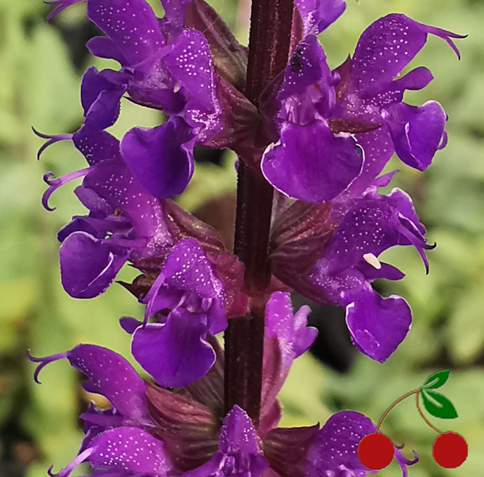 -KWIATY zebrane w smukłe, wzniesione kłosy o intensywnym, głębokim fioletowo-granatowym kolorze. Wyróżniają się niemal czarnymi, sztywnymi pędami kwiatostanowymi. Kwitnie od maja do lipca, a po przycięciu powtarza kwitnienie we wrześniu.