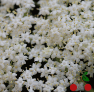 -KWIATY: Śnieżnobiałe, płaskie baldachogrona o średnicy do 10 cm pojawiają się na końcach pędów w maju i czerwcu. Zewnętrzne kwiaty są duże i płonne, natomiast wewnętrzne drobne i miododajne, co przyciąga liczne pszczoły oraz kolorowe motyle.