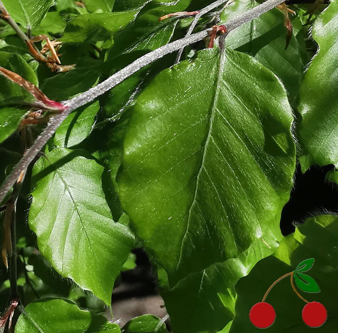 -LIŚCIE: Jajowate lub eliptyczne, o długości do 10 cm, z charakterystycznym, delikatnym owłosieniem na brzegach u młodych okazów. Latem są lśniące i soczyście zielone, natomiast jesienią przebarwiają się na spektakularne, miedziano-złote i rdzawy brąz. Co wyjątkowe - u młodszych roślin i żywopłotów zaschnięte liście często pozostają na gałęziach aż do wiosny, tworząc gęstą osłonę zimową.
