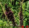 -KWIATY: Wyjątkowe, wąskie kłosy o długości do 15 cm, w kolorze ciemnofioletowym lub granatowym z wystającymi, pomarańczowymi pręcikami. Kwitną w czerwcu i lipcu, pachną bardzo przyjemnie (waniliowo) i są oblepione przez pszczoły oraz kolorowe motyle.