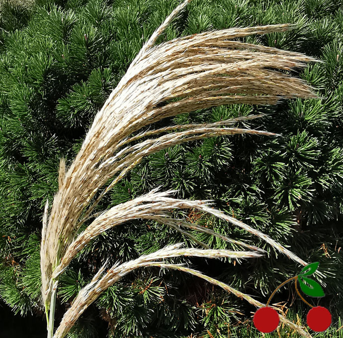 -OWOCE drobne ziarniaki ukryte w wiechach (sterylne – roślina nie rozsiewa się po ogrodzie). Dojrzewają późną jesienią.